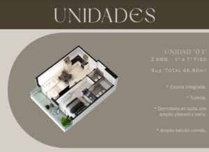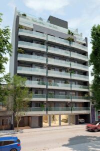 El edificio ofrece departamentos de 1, 2 y 3 ambientes con balcones